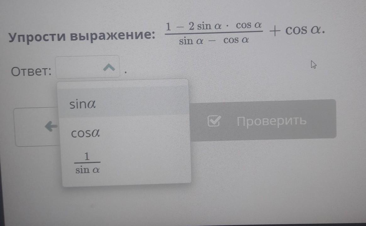 Правильный ответ sin a
