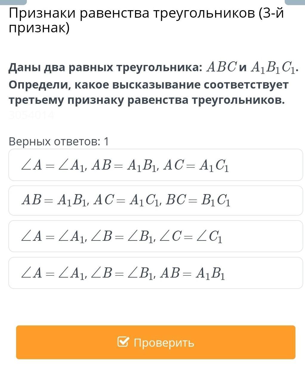 Третий признак это три стороны одного ∆ равны трём сторонам другого ∆