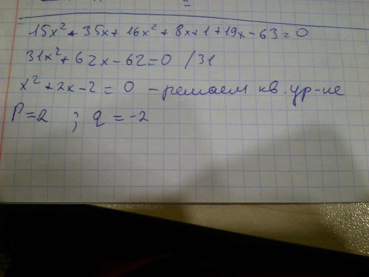 № 1. Приведите уравнение 5х(3х+7)+(4х+1)²= -19х+63 к виду х²+рх+q=0 и укажите значения p и q