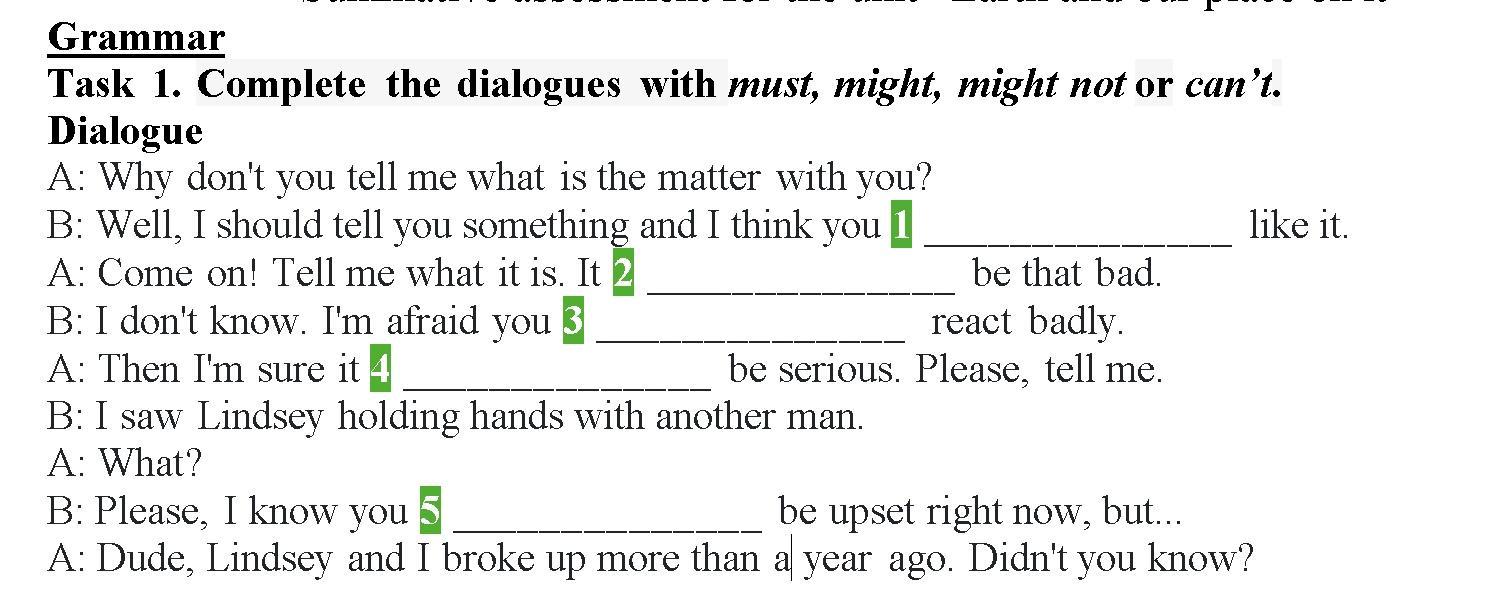 A: Come on! Tell me what it is. It 2 ______________ be that bad.
