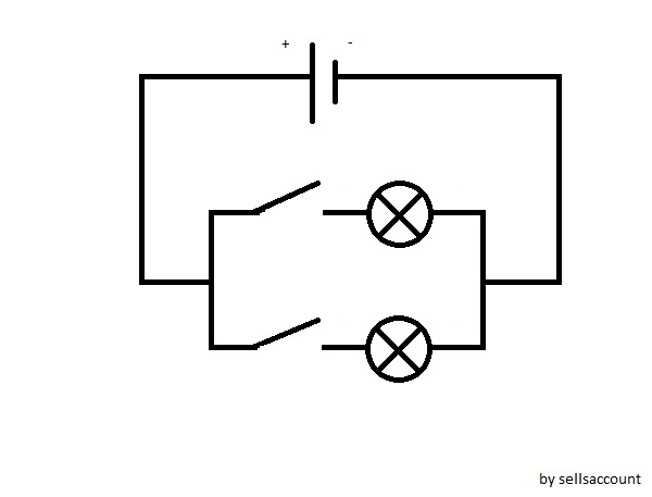 помогите пожалуйста!!! начертите такую схему электрической цепи с двумя лампами и двумя ключами, чтобы каждый ключ включал или выключал только "свою" лампу.