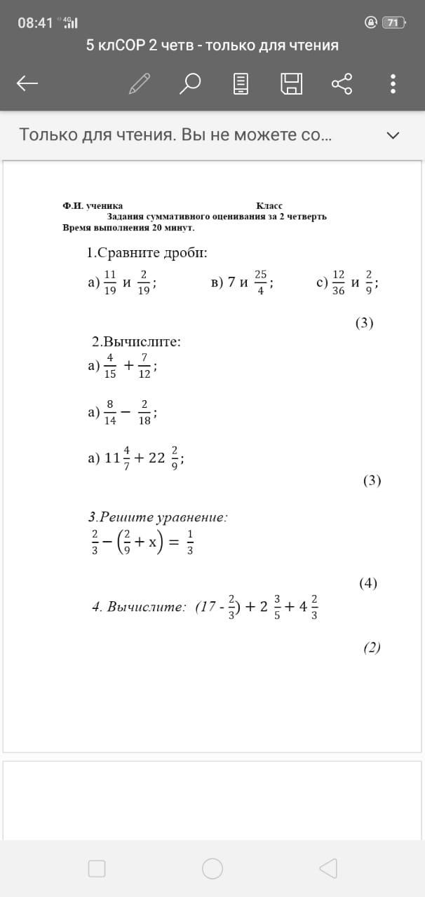 Пошаговое объяснение:1 задание 11/19,7,2/9.2 задание 17/20,29/63,33 50/63 3задание 7/9 4 задание 23 3/5