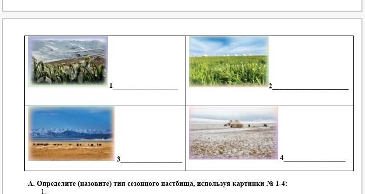 А. Определите (назовите) тип сезонного пастбища, используя картинки пожалуйста для сора надо