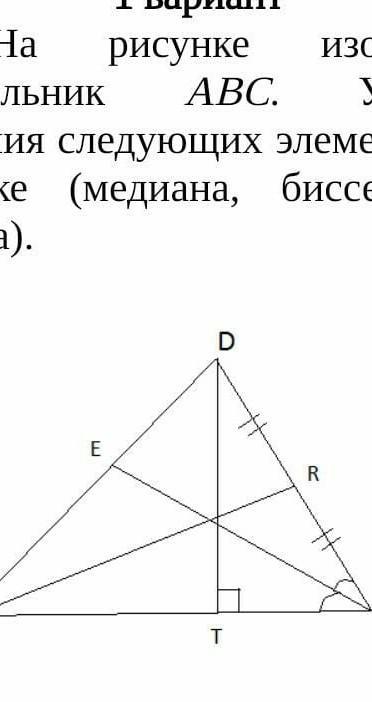 1. на рисунке изображен треугольник авс. укажите названия следующих элементов на рисунке (медиана, биссектриса, высота).