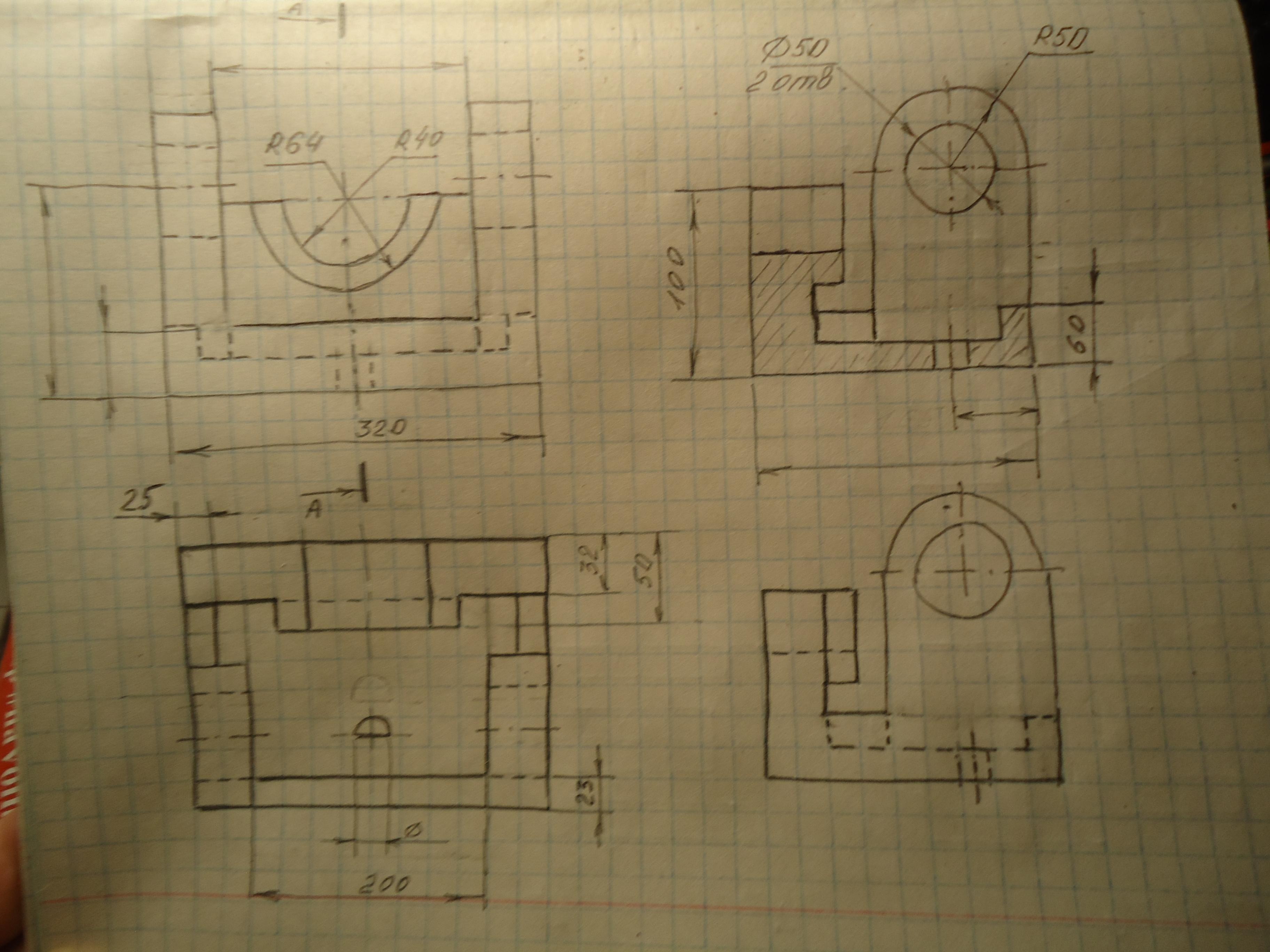 (Внизу под видом слева с профильным разрезом я расположила вид слева до выполнения разреза.)