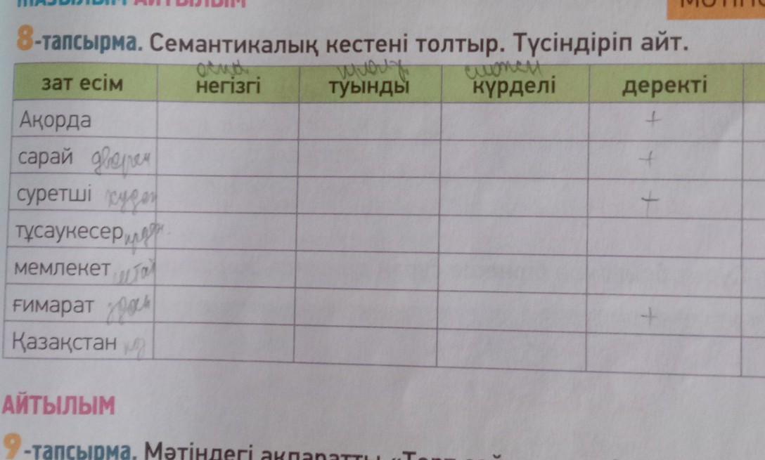 семантикалық кестені толтыр. түсіндіріп айт 8-тапсырма (в конце слово дерексіз) пж прошу