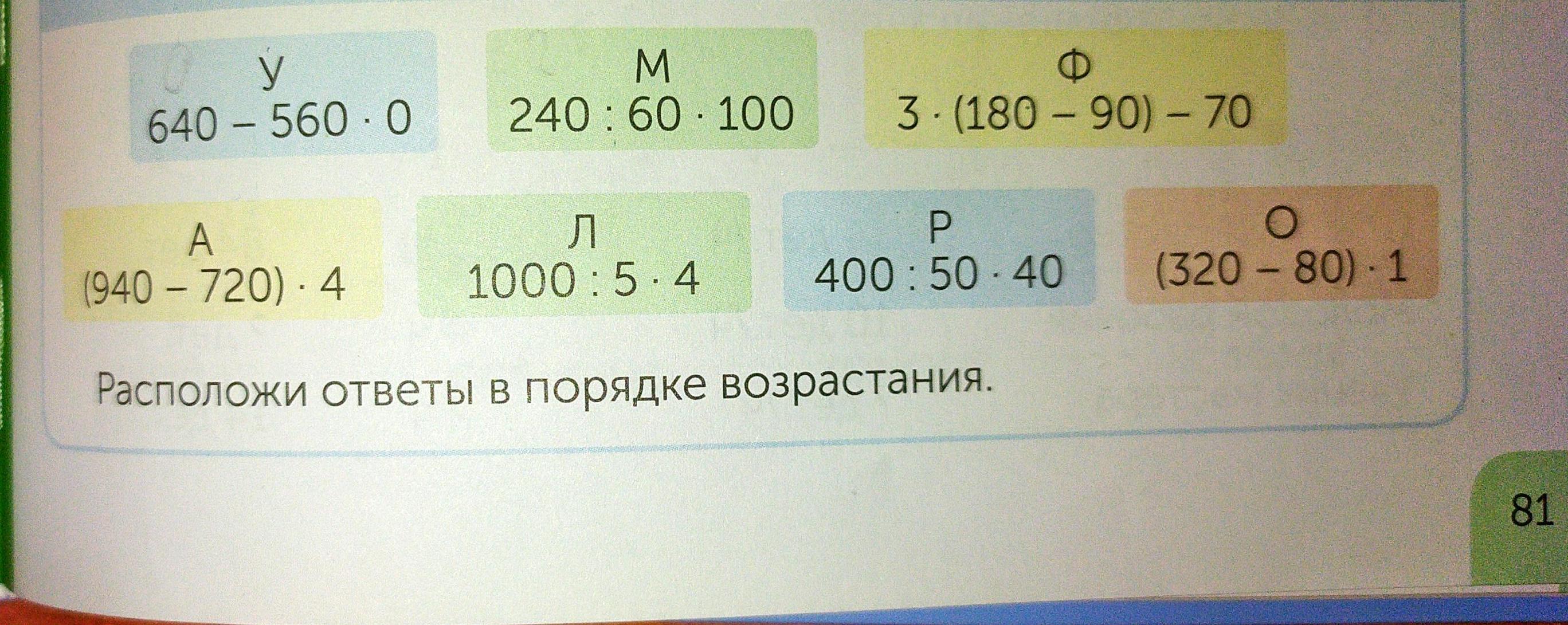 Расположи ответы в порядке возрастания. Какое слово получилось?