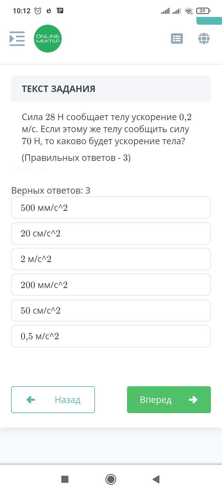 а2 = а1 х F2/F1 = 0,2 х 70 /28 = 0,5 м/с