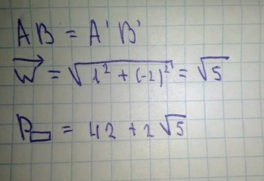 Когда вы копируете отрезок AB параллельно вектору w, вы перемещаетесь в отрезок AB. Если w (1, -2), найдите периметр прямоугольника ABBA. AB = 21 Пожалуйста помогите!