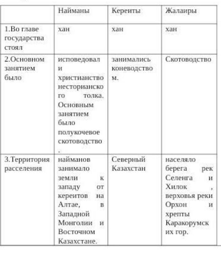 составьте таблицу политической истории найманов и кереитов и сделайте вывод сходство и различие этих государств помогите СРОЧНО