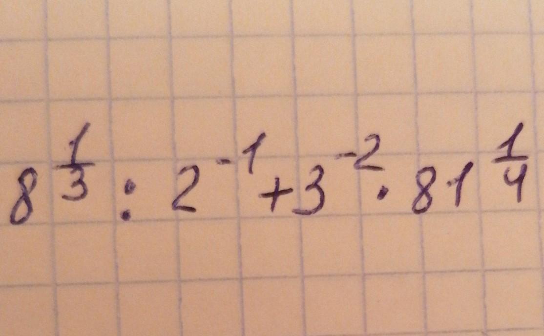 8 1/3 / 2-¹+3-²•81 1/4= 2 (1/2)+(1/9)•3=4+1/3=4 1/3