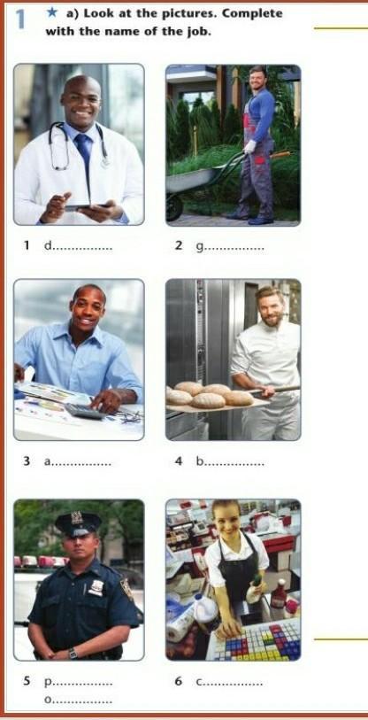 1 doctor 2garden3 не могу понять 4break bakery chef 5polise officer 6seller
