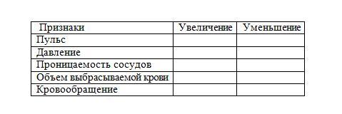 Вскоре после начала физических нагрузок наблюдаются значительные изменения в самочувствии. Сравните, как будут изменяться признаки кровеносной системы вскоре после нагрузок?