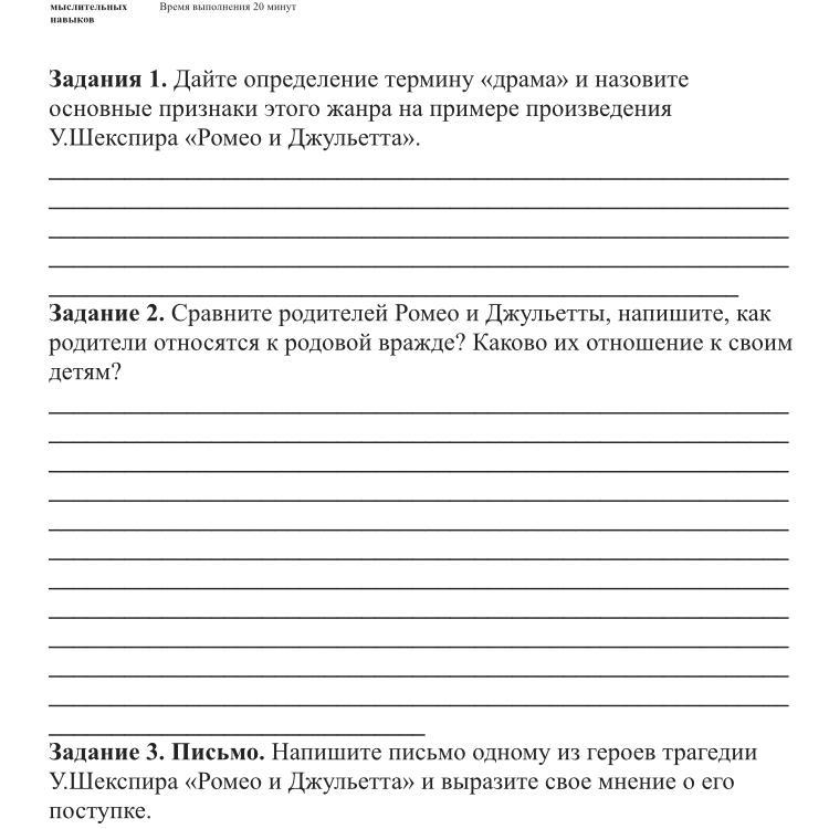 №1: Драма-В отличие от лирики и подобно эпосу, драма воспроизводит прежде всего внешний мир — взаимоотношения между людьми, их поступки, возникающие конфликты. В отличие от эпоса, она имеет не повествовательную, а диалогическую форму. Эстетический предмет драмы — эмоционально-волевые реакции человека, проявленные в словесно-физических действиях. Любовь Ромео и Джульетты до конца их жизненного пути.