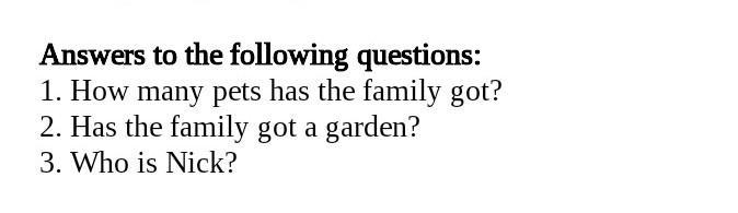 1. The family has got 2 pets. 2. Yes, the family got a garden. 3. Nick is Mary’s brother.