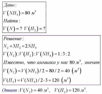 сколько литров водорода и азота потребуется для синтеза 80 м ^3 аммиака NH3? (Газы взяты в равных условиях. )