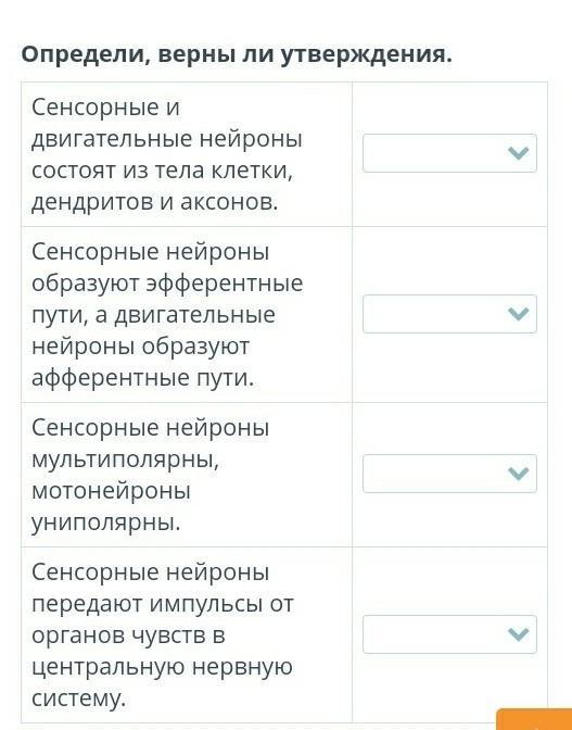 Сенсорные и двигательные нейроны состоят из тела клетки, дендритов и аксонов.