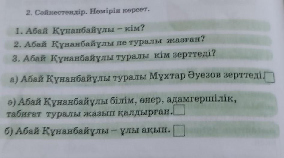 2. Сәйкестендір. Нөмірін көрсет.