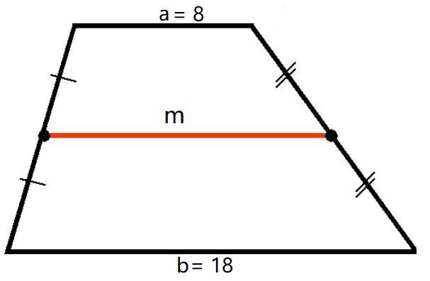 На картинке а и b - основания трапеции (а = 8, b = 18), m - её средняя линия.