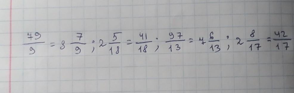 Преобразуйте смешанные числа в неправильные дроби а неправильные дроби в смешанные числа: 79/9, 2 5/18, 97/13, 2 8/17