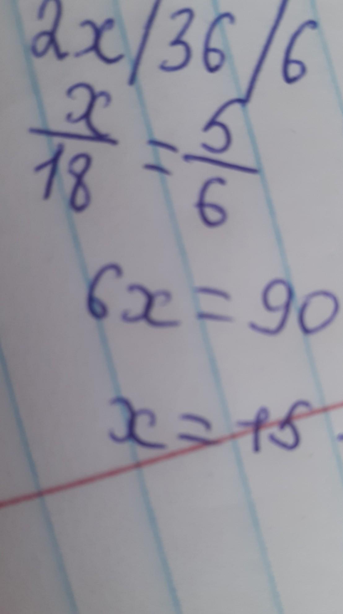 2x*6=36*5 2x=180/6 2x=30 x = 30/2