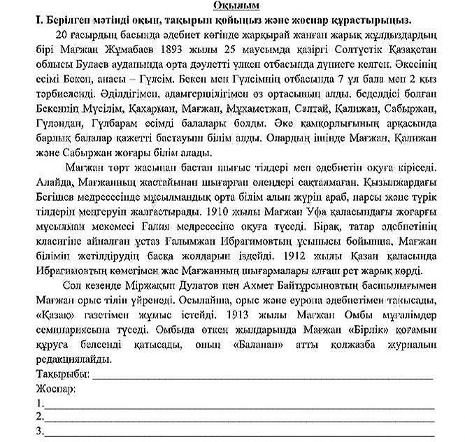 Ответ: Мағжан Жұмабаевтің өмірбаяны
