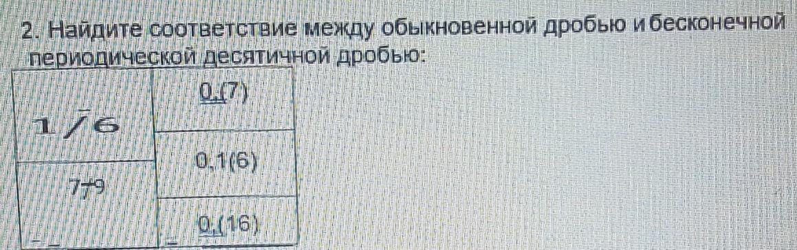 2. Найдите соответствие между обыкновенной дробью и бесконечной