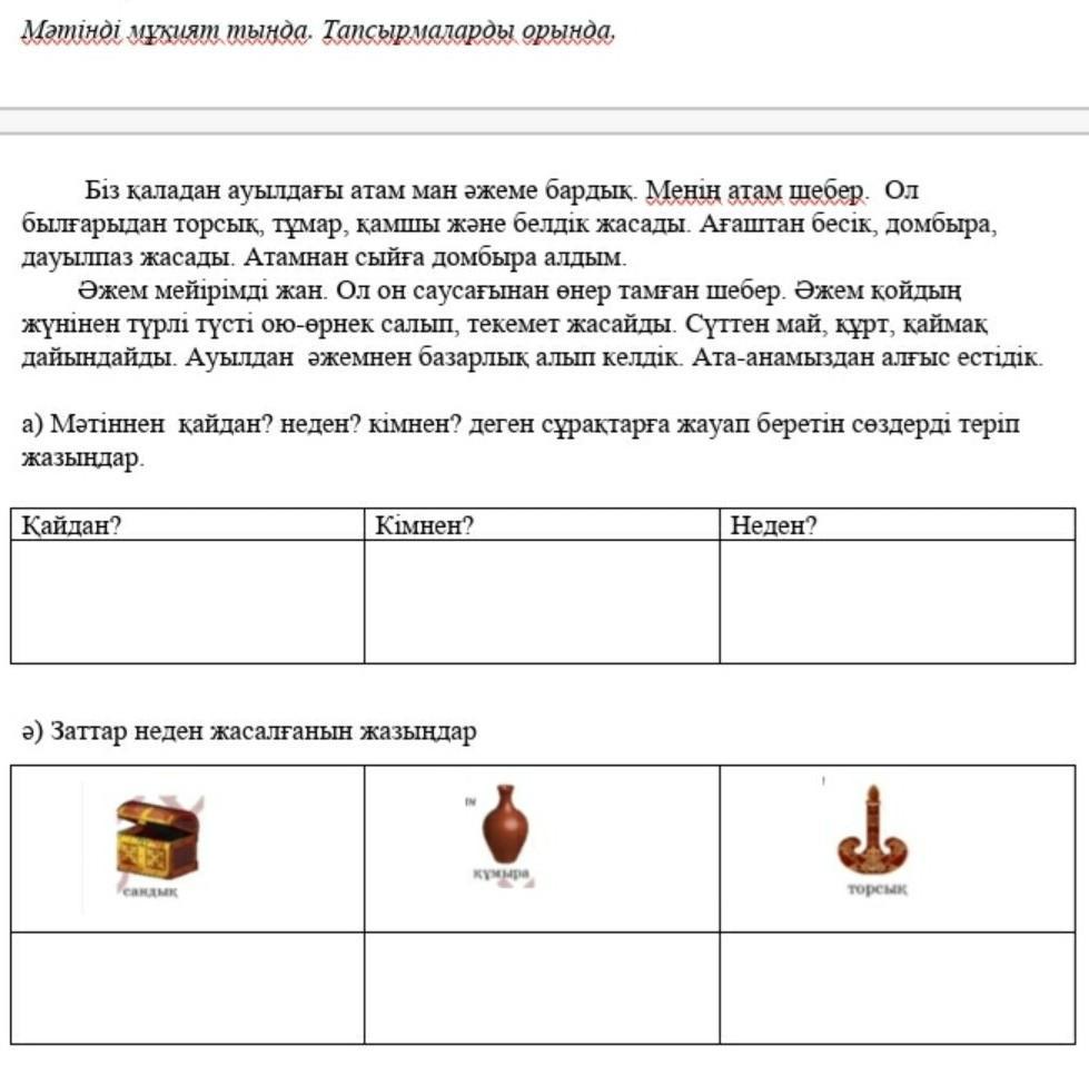 Неден? - былғарыдан, ағаштан, сүттен.