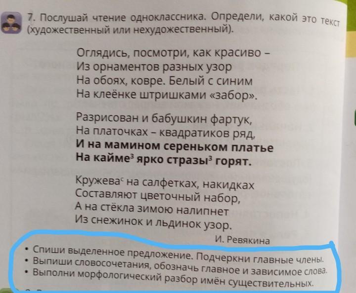• Спиши выделенное предложение. Подчеркни главные члены.