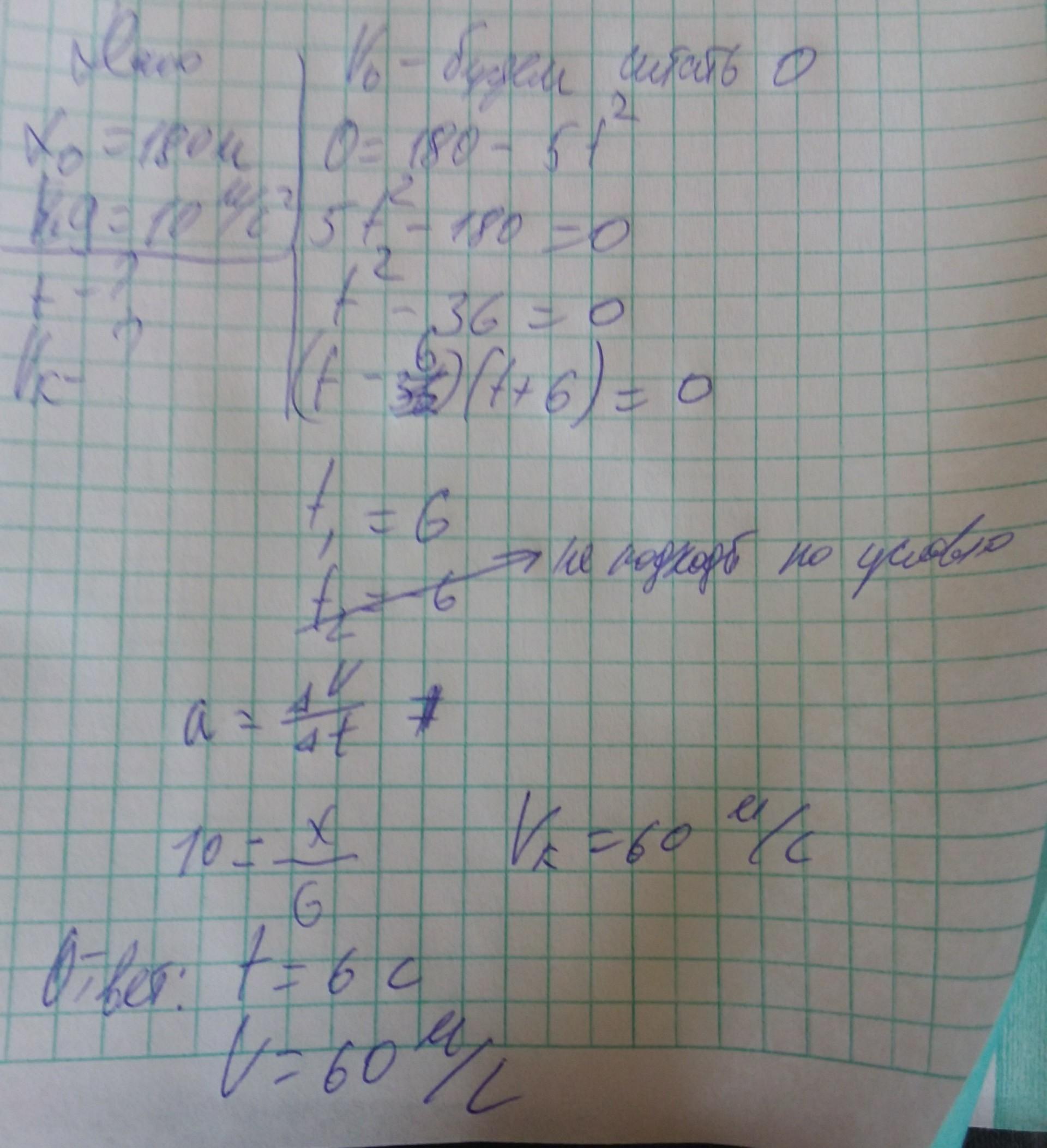 Тело падает с высоты 180 м. Найти время падения и скорость в момент соприкосновения с землёй.