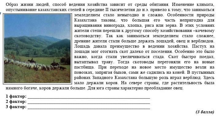 2. ИСПОЛЬЗУЯ ТЕКСТ И РИСУНОК, ОПРЕДЕЛИТЕ 3 ФАКТОРА ФОРМИРОВАНИЯ КОЧЕВОГО СКОТОВОДСТВА В КАЗАХСТАНЕ.