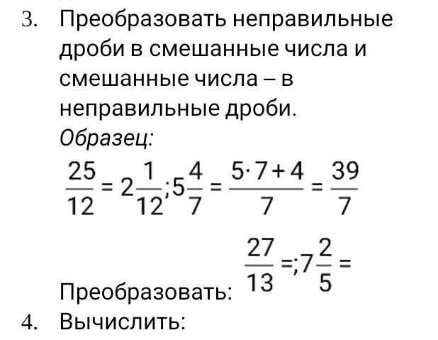 даю 10 баллов Преобразовать неправильные дроби в смешанные числа и смешанные числа – в неправильные дроби.