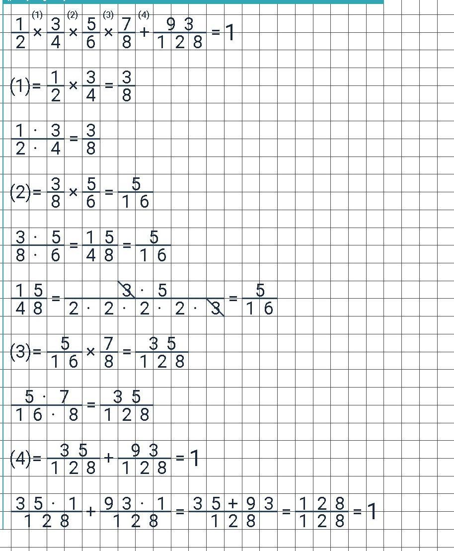 Умножение обыкновенных дробей и смешанных чисел. Взаимно обратные числа. Урок 1 Выполни действия: 1/2*3/4 *5/6*7/8+93/128 быстрее дайты бае
