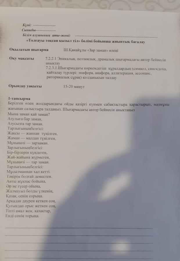 автор өзінің ойын жақсы сөзбен жеткізген,ол осы және бұрынғы заманды сипаттап өз ойын өлең арқылы жеткізген.Ол кісі осы өлеңді өз сөзімен жеткізіп басқа адамдарға білім беріп жақсы адам болуға жетелеген.
