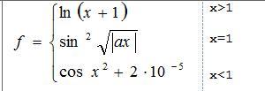 Println('F = ', x = 1 ? sin(sqr(sqrt(abs(a*x)))) : f);