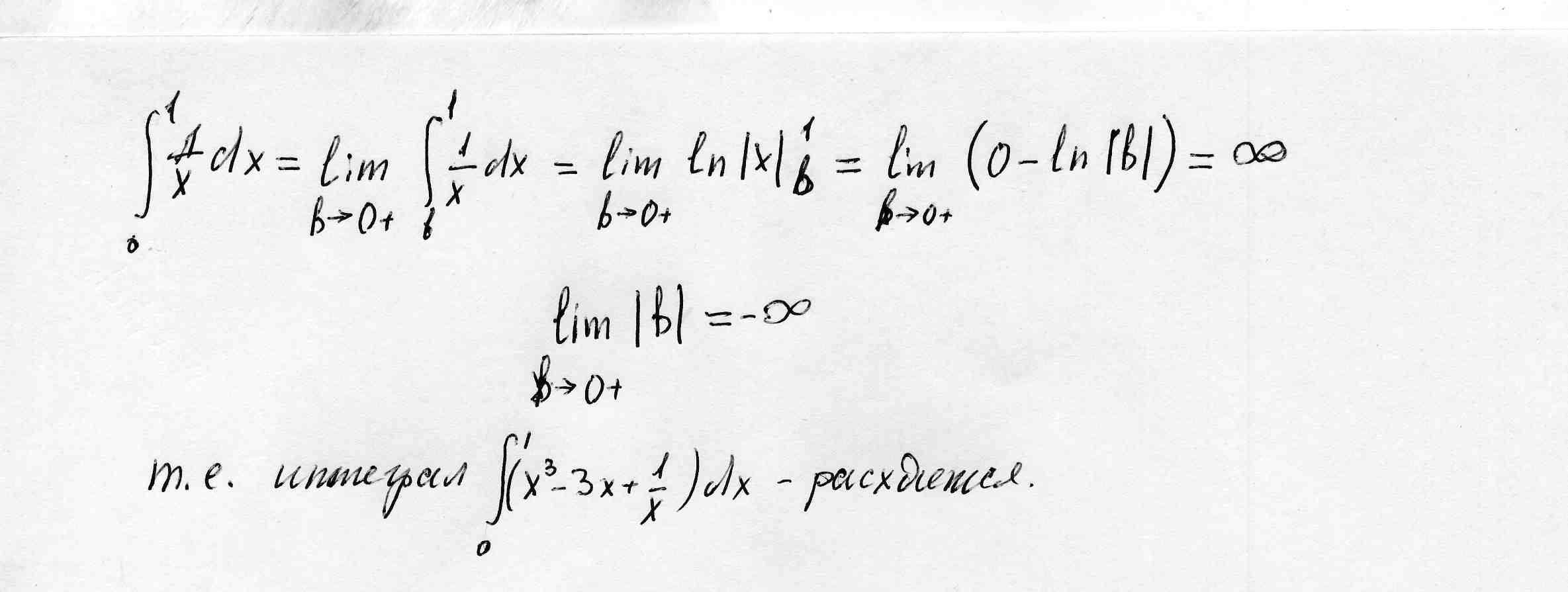 второй интеграл расходится, следовательно расходится