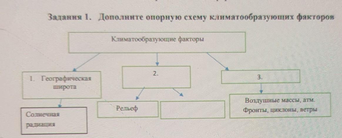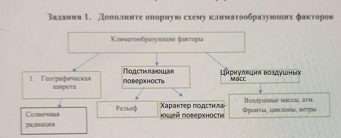 Задання 1. Дополните опорную схему климатообразующих факторов