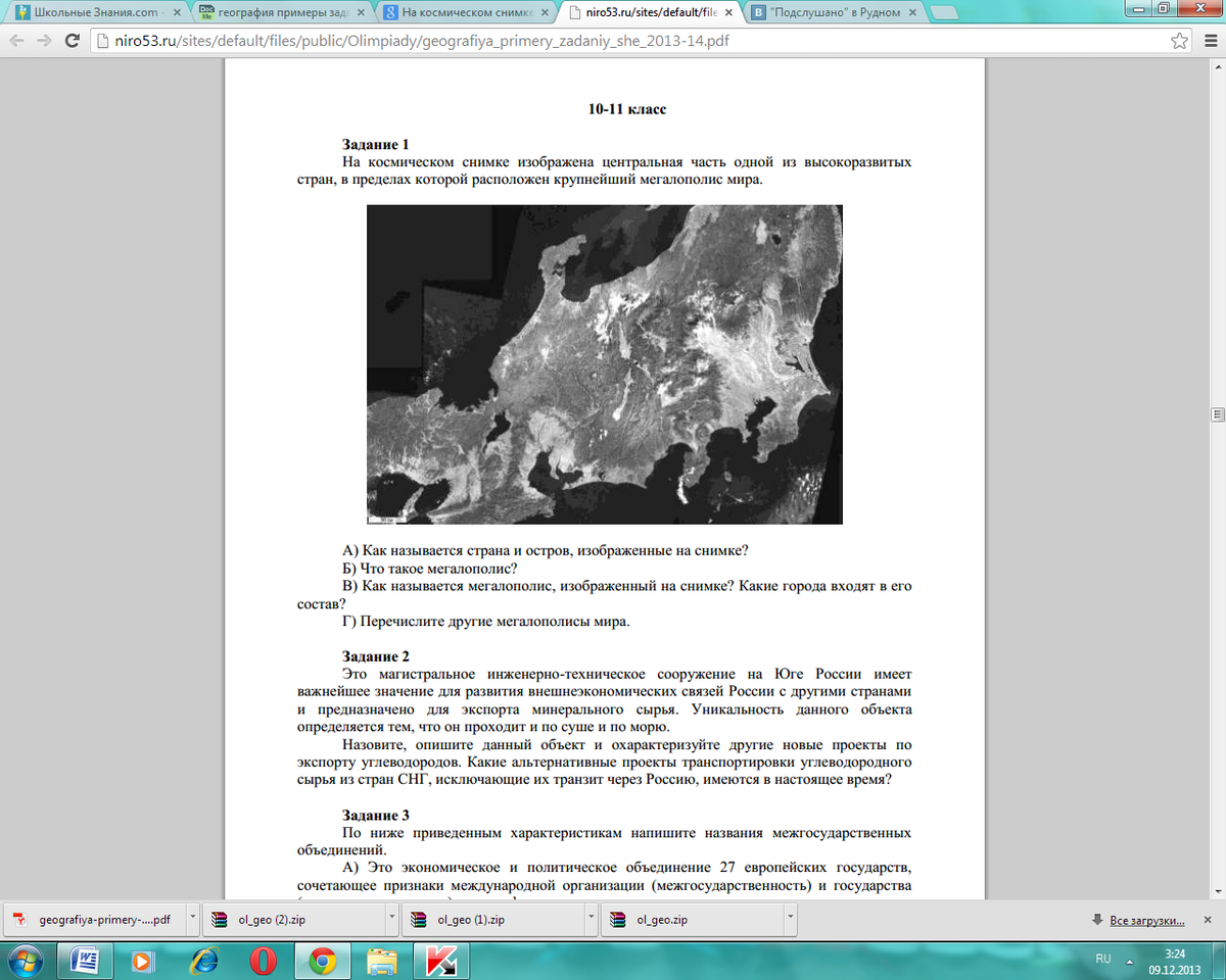 3) Мегаполис на снимке скорее всего Токио, города не знаю, но входят в него острова Огасавара и Идзу.