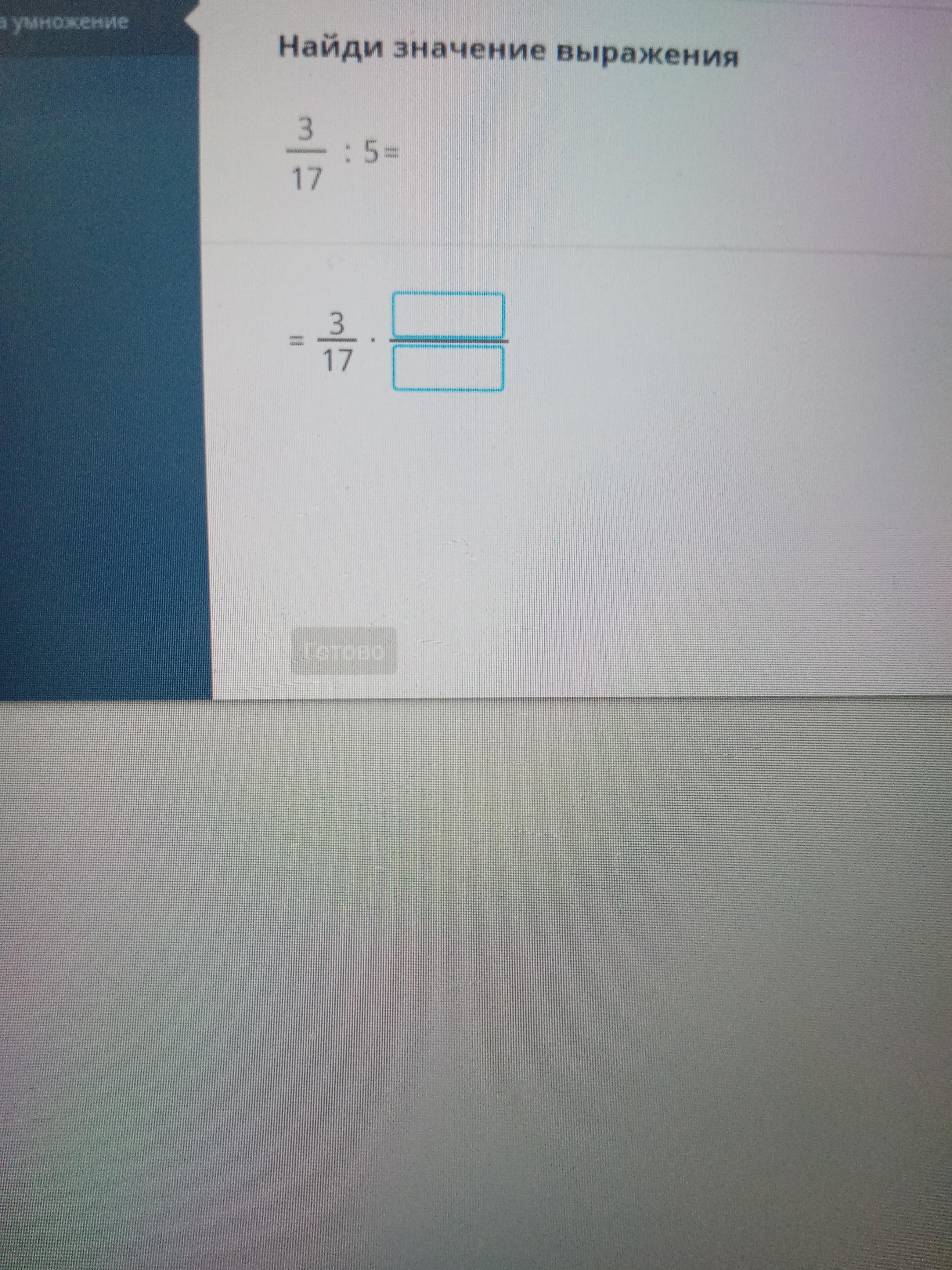 3/17:5=3/85 ( решение-3/17 *1/5)