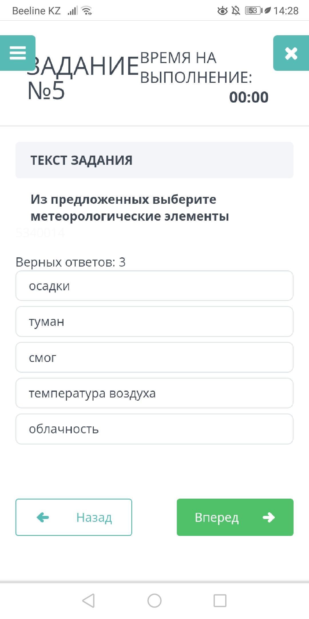 Из всего вышеперечисленного к метеорологическим элементам относятся осадки, температура воздуха и облачность.
