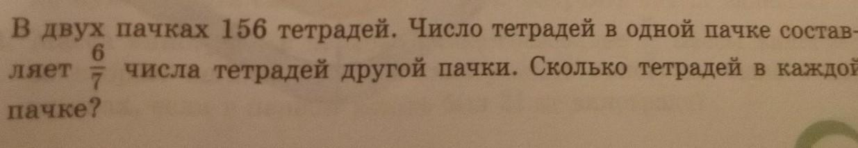 Ответ : 84 тетради в первой пачке и 72 тетради во второй пачке .