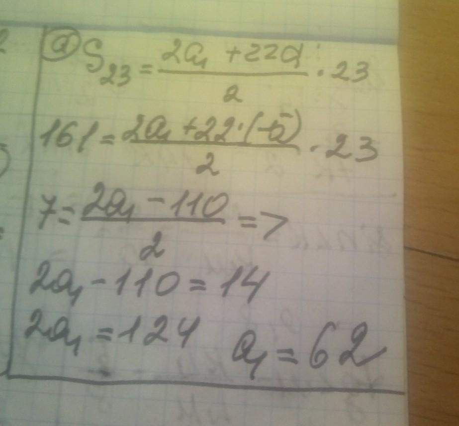 найдите а1 и An-члены арифметической прогрессии (аn), для которой:а) n=23, d=-5, S23=161. Б) n=16, d=0,5, S16=-48