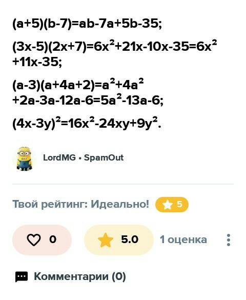 Подайте многочлен у стандартному вигляді (a+5)(b-7)