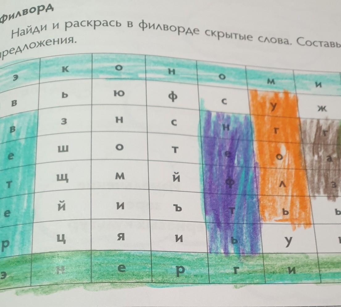 Найди и раскрась в филворде скрытые слова. Составь из них