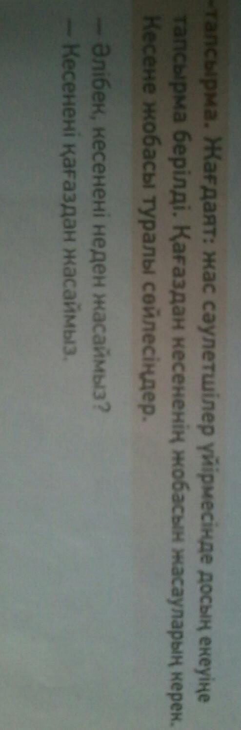 5-тапсырма. Жағдаят: жас сәулетшілер үйірмесінде досың екеуіңе
