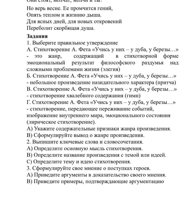 А) Содержательные признаки жанра – это пейзажное стихотворении с философской составляющей