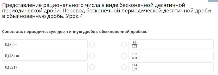 Представление рационального числа в виде бесконечной десятичной периодической дроби. Перевод бесконечной периодической десятичной дроби в обыкновенную дробь. Урок 4