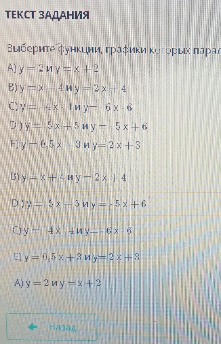 выберите функции графики которых парарельны ответ обоснуйте. умоляю прошу. даю 20 балов