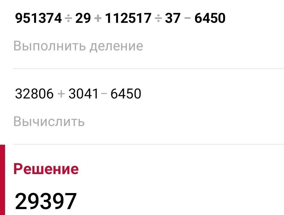 951 374 : 29 + 112 517 : 37 - 6450 = 29397