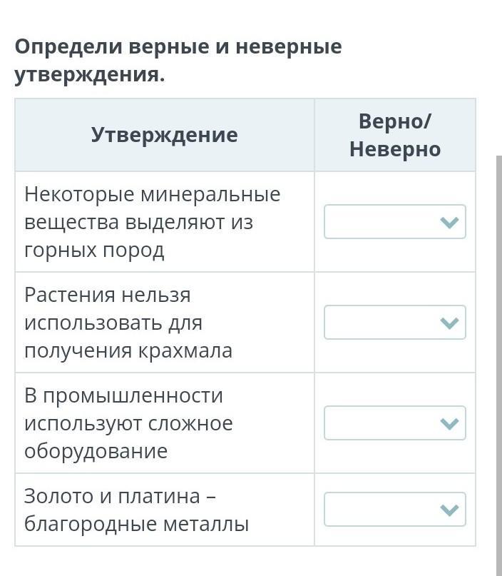 Определи верные и неверные утверждения.